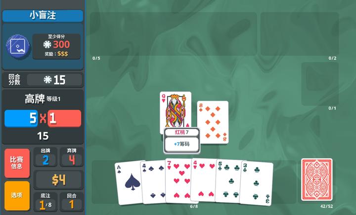 比如一个同花,基础倍率是4。有一个玻璃牌的8,触发了斐波拉契。