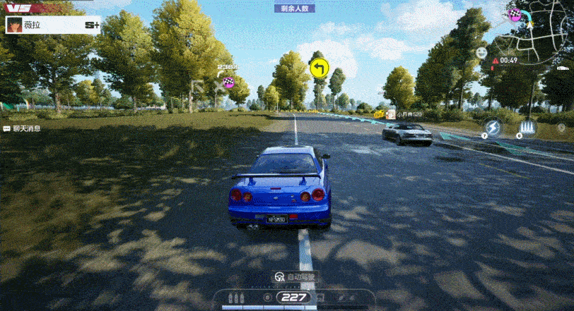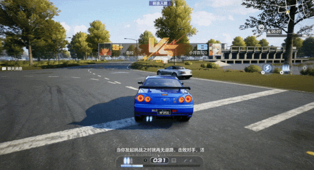 当你附近出现其他赛车手时,小地图就会显示他们的位置,靠近即可直接发起单挑比赛。