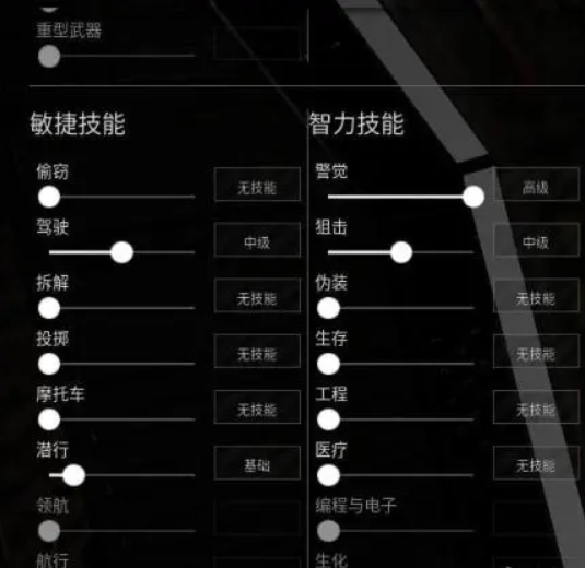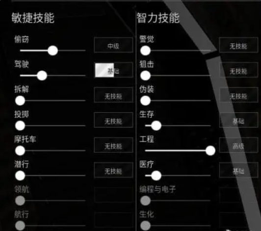 二级偷窃有利于在游戏内高级物资点进行撬锁搜索,高级工程可以制作子弹等物资,基础生存可以满足大部分需求并且自带指南针。