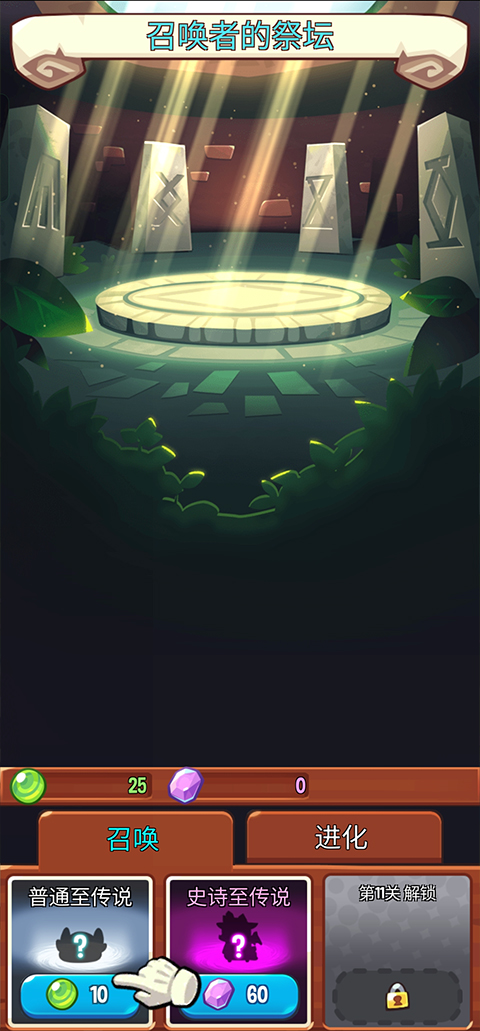 2、进入到召唤页面之后,点击下方的进化按钮;