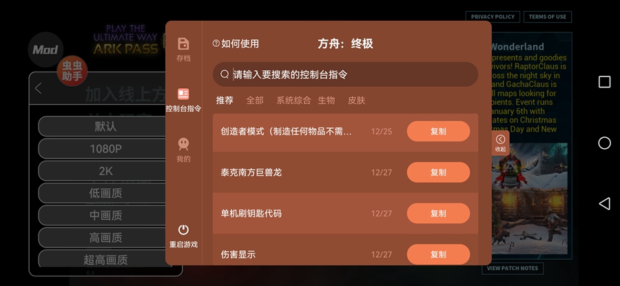 2、确定好有指令悬浮窗后,打开游戏界面的控制台