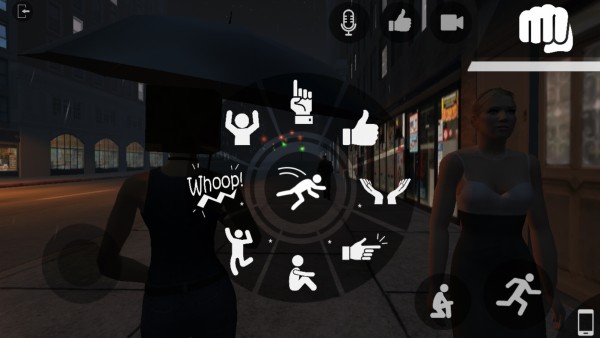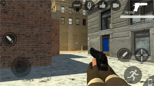 4、进入游戏里,可以先点击【chat】对话,左边的圆圈是前进或者后退,右边则是蹲下和跳跃
