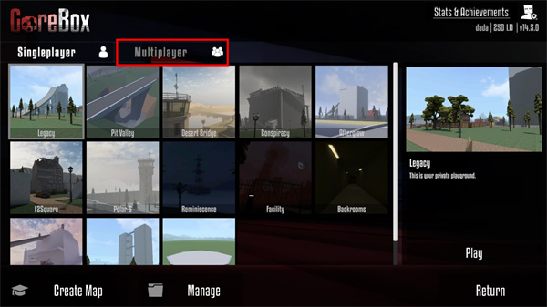 GoreBox 的内置地图编辑器不仅提供游戏玩法-它还是您想象力的画布。制作自定义地图并用您选择的纹理装饰它们。通过内置工作室分享您的作品,并在其他玩家设计的地图中冒险。