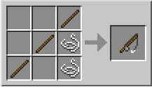 5、钓鱼竿:钓鱼竿的制作材料非常简单,只需要3根木棒以及2个蛛丝。用它可以获得各种鱼类、附魔书和其他杂物。