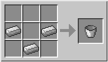9、铁桶:由三个铁锭合成。可以装岩浆、水和牛奶。装了牛奶的桶可以饮用,它会帮助你清除身上所有的异常状态,如中毒、凋零等等。