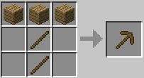 1、镐:镐的制作材料为木板、圆石、铁锭、金锭或钻石。镐可以用来挖掘方块以及其他资源。