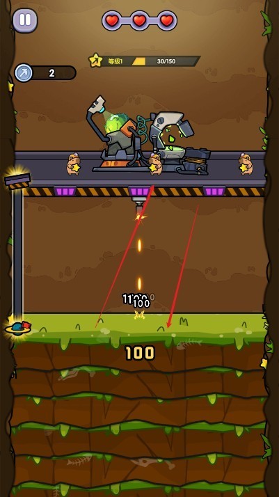 --长按屏幕激活钻头冲击波,短触实现紧急跃迁机动。随着钻头持续向下推进,动态生成的岩层