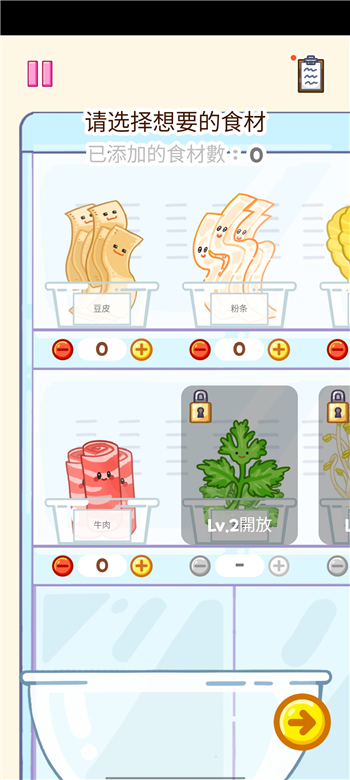 10、在等级提升之后,可以到左上角的商店当中购买更多食材,制作更加丰富的麻辣烫。