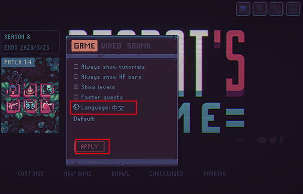 提醒:点击右上角'扳手'按钮,点击Language:English切换中文语言,再点击APPLY即可确认。