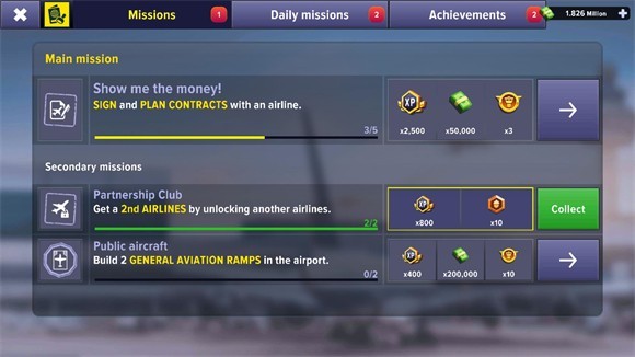 2、经营机场的第一步就是需要签订各种合同,玩家可以点击合同和航班公司签订合同。