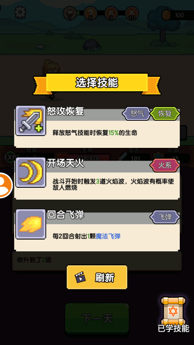获得技能奖励,根据自己的需求选择。