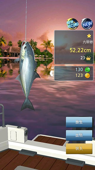 5、当鱼的血条见底时,就成功钓到了,这时候可以选择放生、出售或者装入。