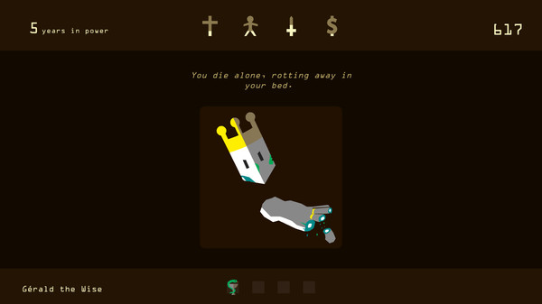 充满探索元素的王朝:尽可能尝试各种方式来统治你的王国,缔结联盟,向敌宣战抑或用每一代不同的国王不断探索新的死亡方式。某些事件影响长远,能够延续数个世纪,烧死女巫的火刑,科学启蒙运动,宫廷政变,甚至会同恶魔斗智斗勇。