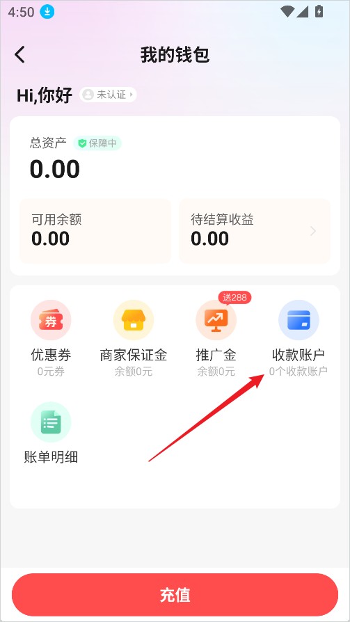 3、点击收款账户。