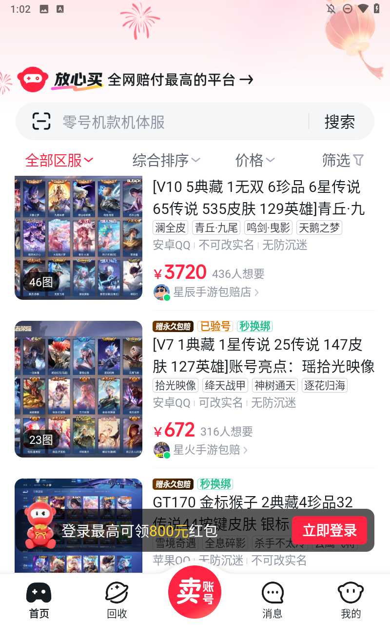1、多种游戏:支持多种热门游戏的账号交易,不管什么游戏都能在这里找到合适的账号。