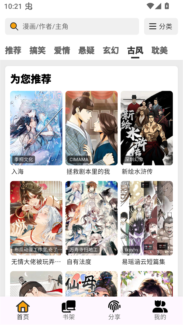 2、也可以在分类中进行搜索自己想看的漫画;